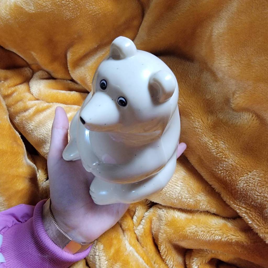 歳の瀬に家に新しい貯金箱がやってきた。少しぼけっとした顔のしろくまだ。しろくまのお腹にチャリンチャリンと来客から徴収した酒代や飯代が入っていく。(最近はPayPayで払われることも多いので、そこまで出番が多いわけではないが)