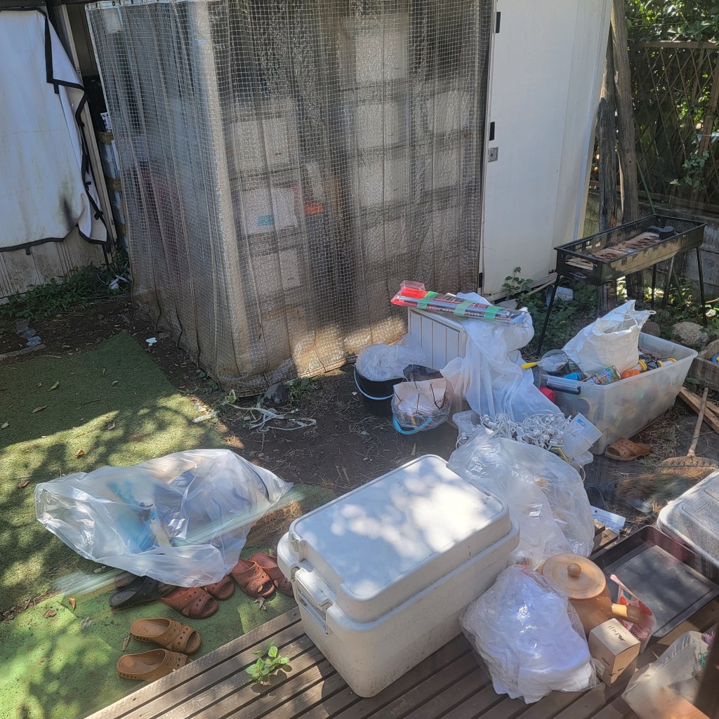 庭の倉庫にみんなが運び入れてくれた備品たちと、それでも残ってしまった庭に”ただいる”備品だったものたち